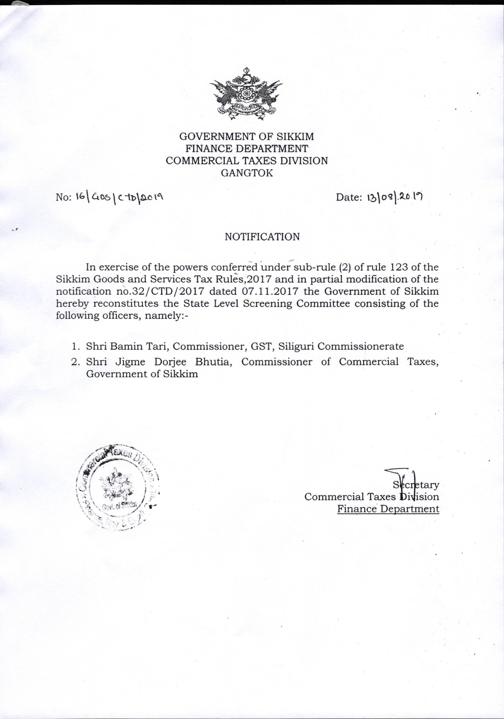 | 10 | NOTIFICATION NO 16/GOS/CTD/2019 | Mon, 19/08/2019 | Mon, 19/08/2019 |